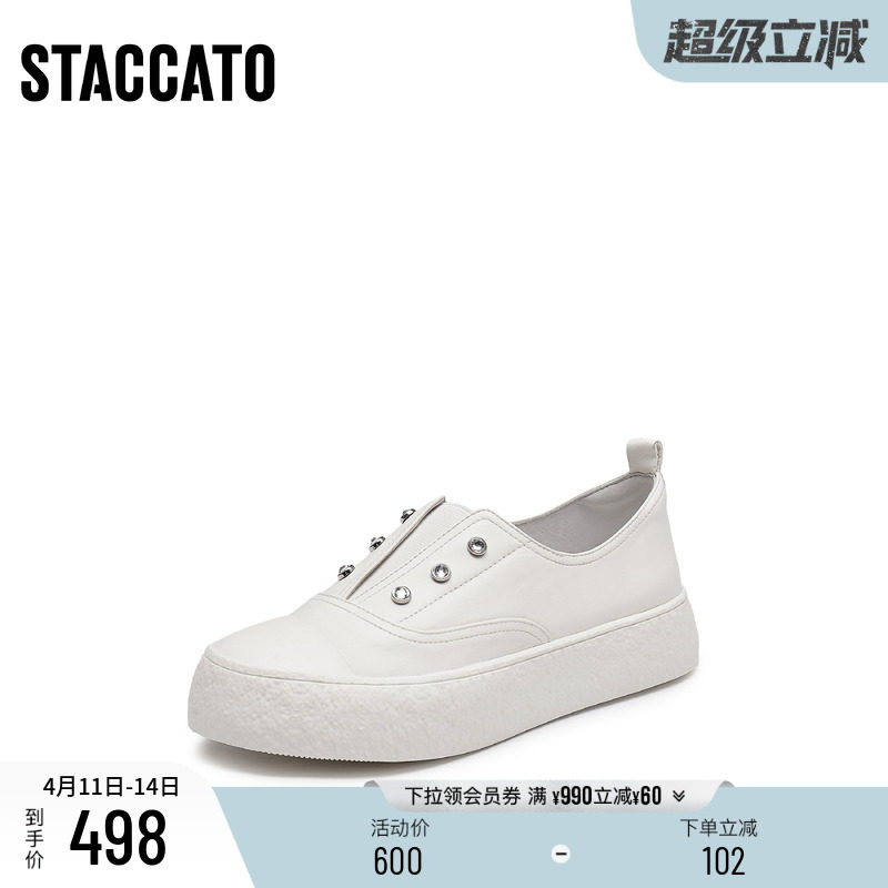思加图新款百搭板鞋小白鞋厚底休闲鞋一脚蹬女鞋F1386CA4