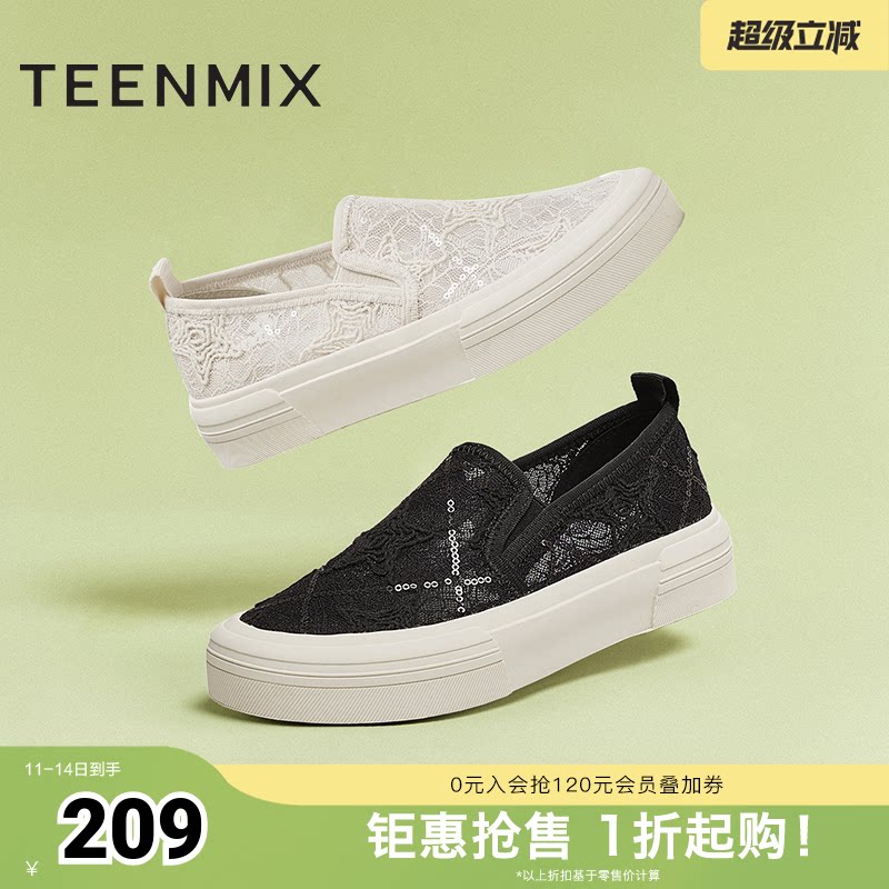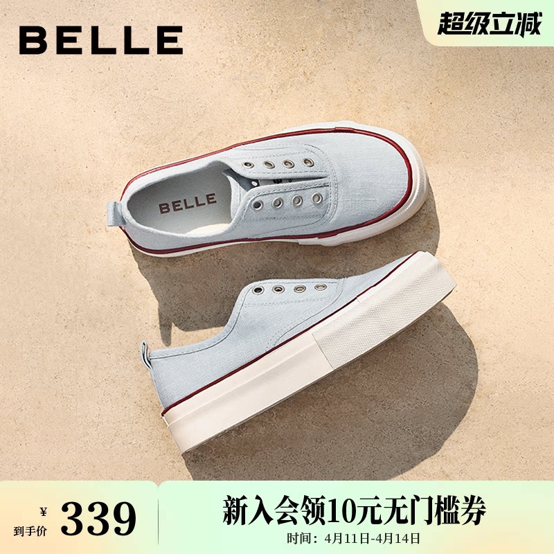 百丽航海家帆布鞋厚底一脚蹬懒人鞋新款百搭休闲小白女鞋B2699C预