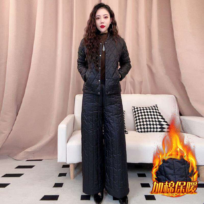 巨好看的冬装两件套女2025年新款加绒加厚棉衣棉服宽松阔腿裤套装