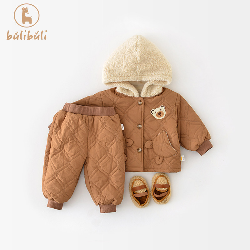 宝宝套装冬装2023新款婴儿衣服男女小童洋派时尚加绒夹棉两件套潮