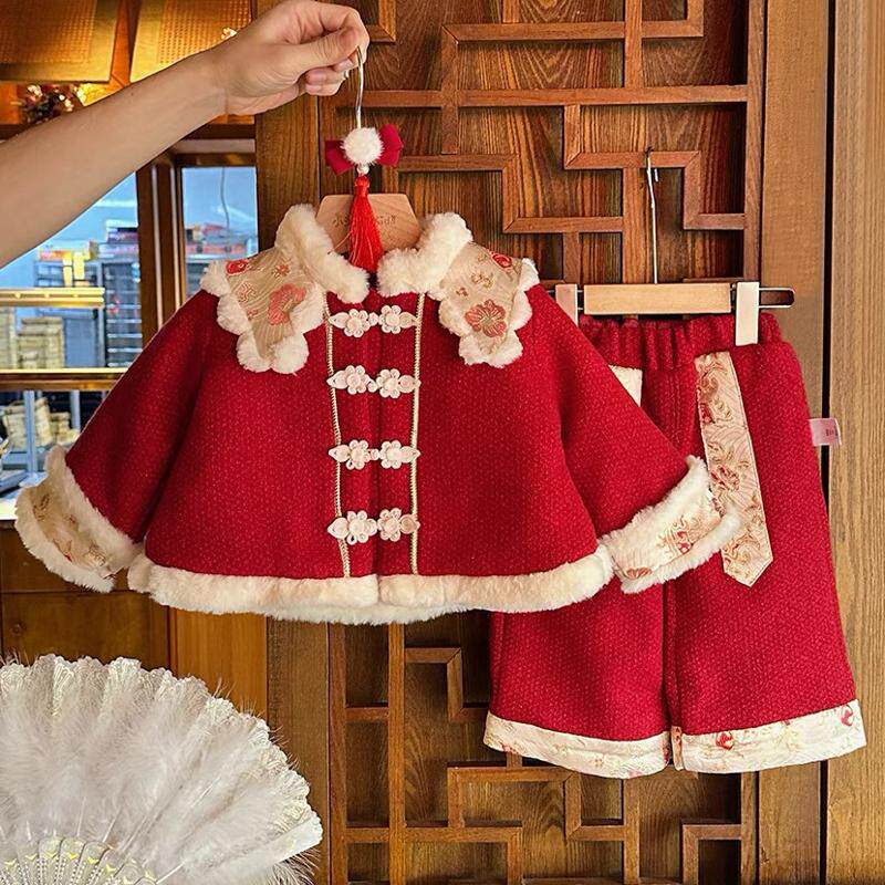 冬季新款年款女宝宝儿童套装一件代发2024喜庆时尚洋气冬装套装潮