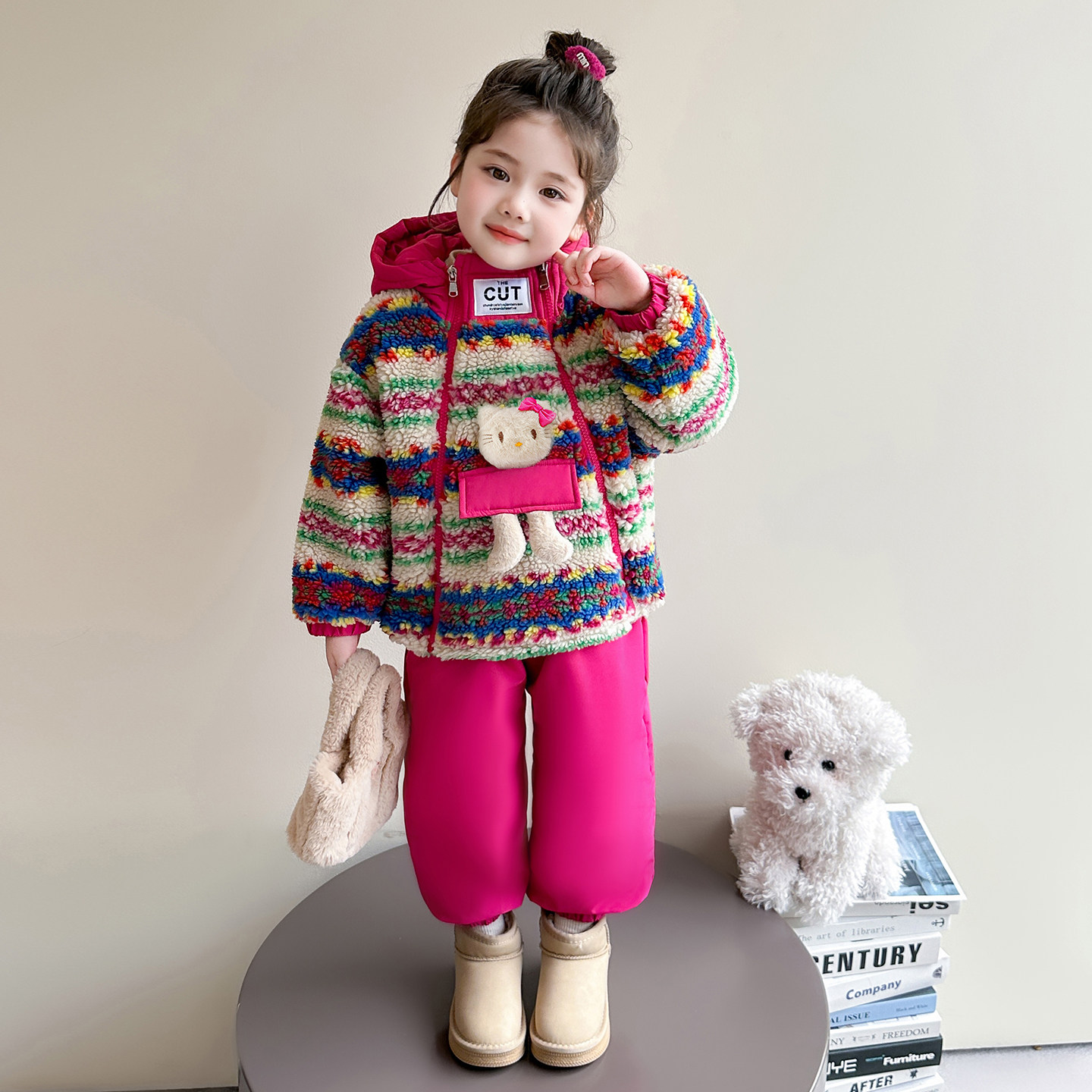 柒号童仓儿童韩系洋气加厚棉服套装冬装新款女童保暖外套时尚短裙