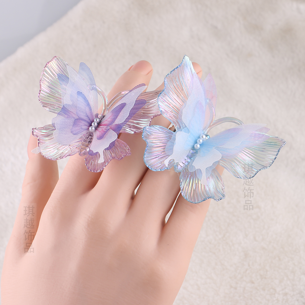 儿童蝴蝶戒指女新款网红渐变彩色指环小众设计公主水晶饰品可调节