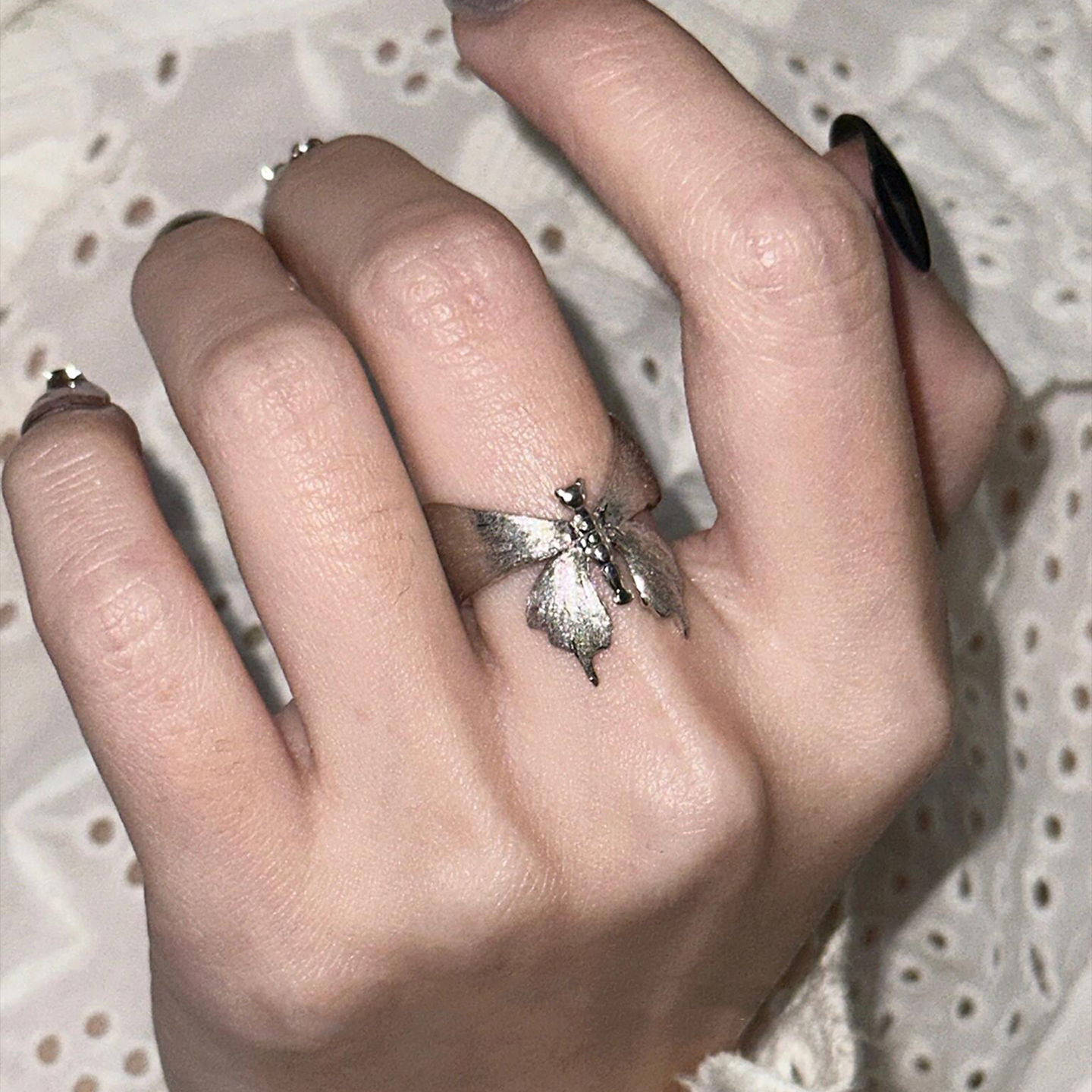 【巷南】925纯银碎银蝴蝶戒指轻奢食指戒小众高级感闭口戒素圈女