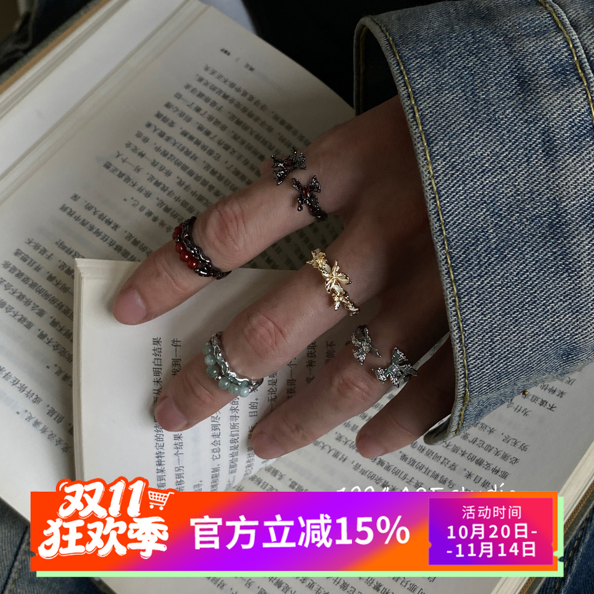 柴夫工作室/J207 韩系甜酷不规则蝴蝶戒指小众点钻设计开口指环