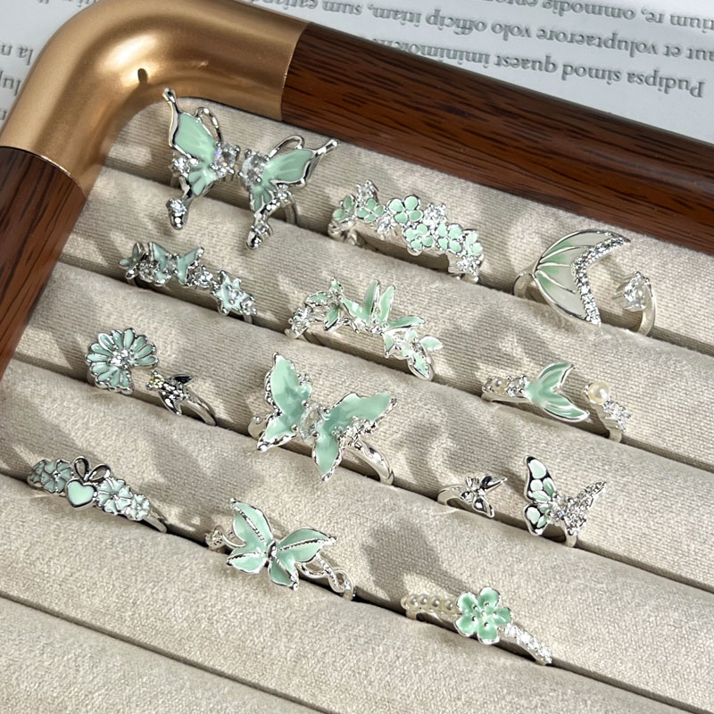 曼波绿蝶森系简约清新绿色珐琅蝴蝶戒指女爆款鱼尾时尚冷淡风指环