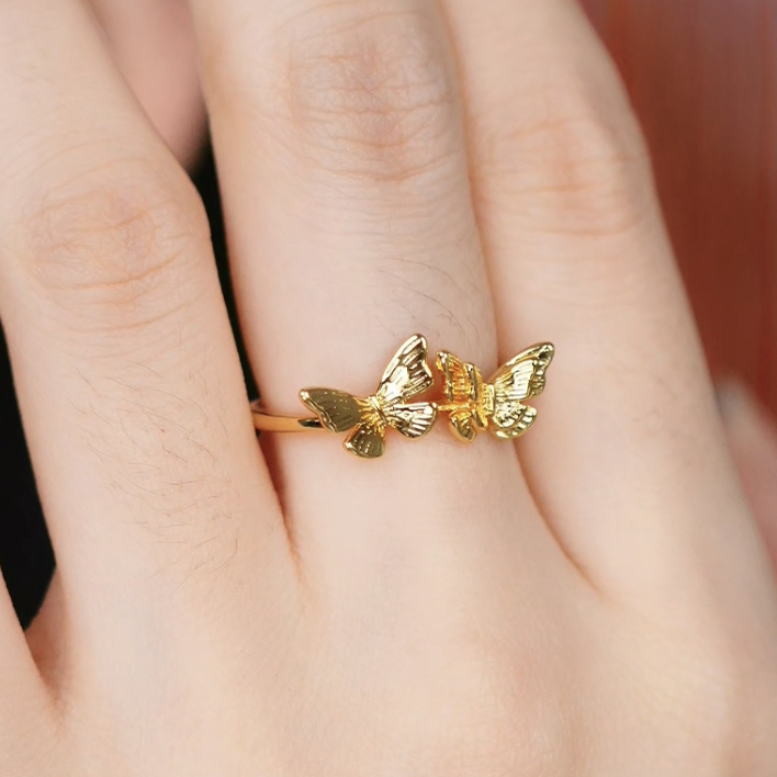 旭平晓蝶轻舞金色镂空双蝴蝶戒指小众设计轻奢ins高级感易搭指环