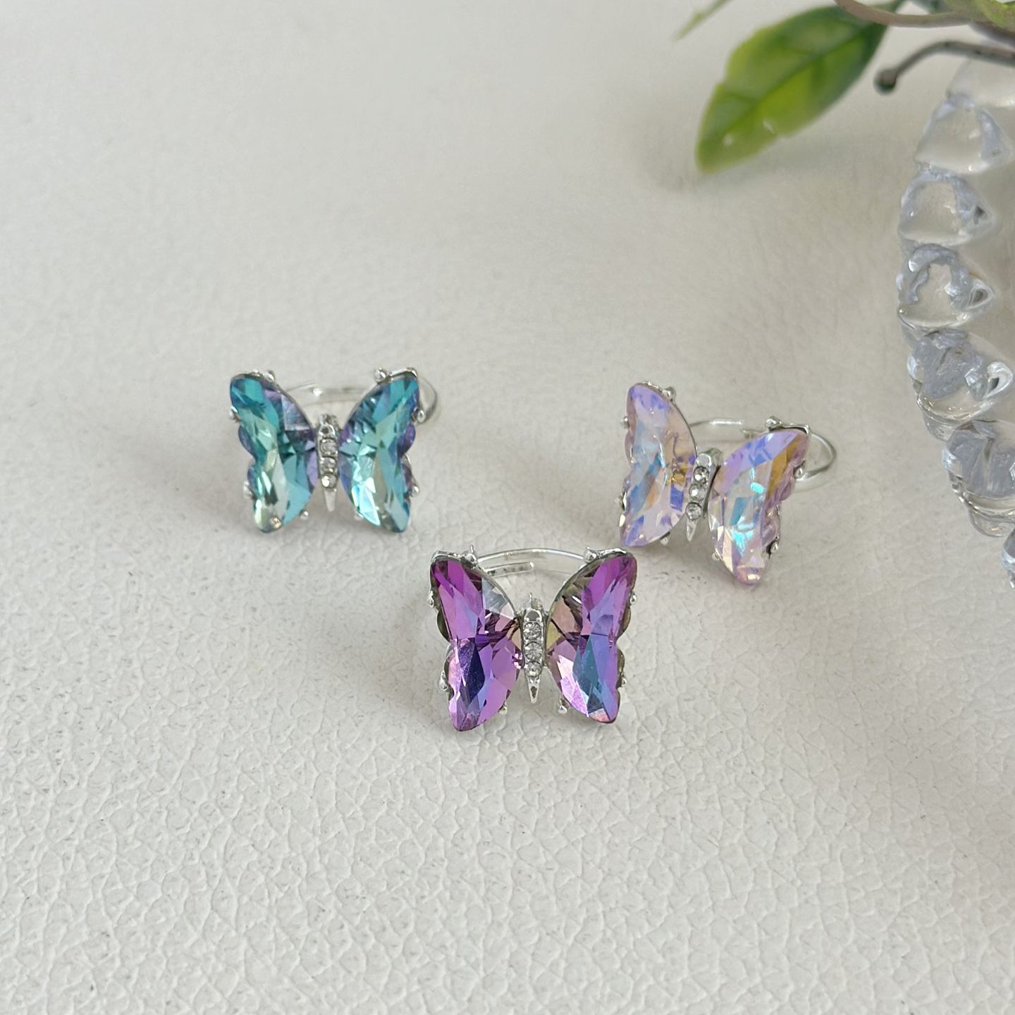 儿童立体蝴蝶戒指小众设计小女孩渐变彩色水晶指环首饰品宝宝礼物