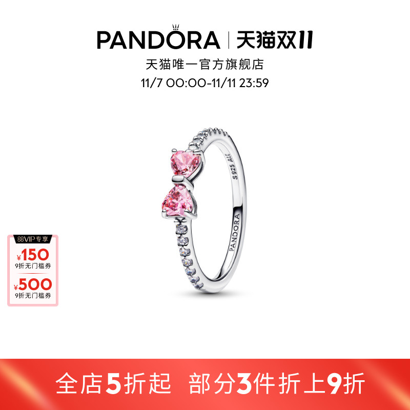 [双11]Pandora潘多拉恒耀粉蝴蝶戒指粉色心形精致礼物
