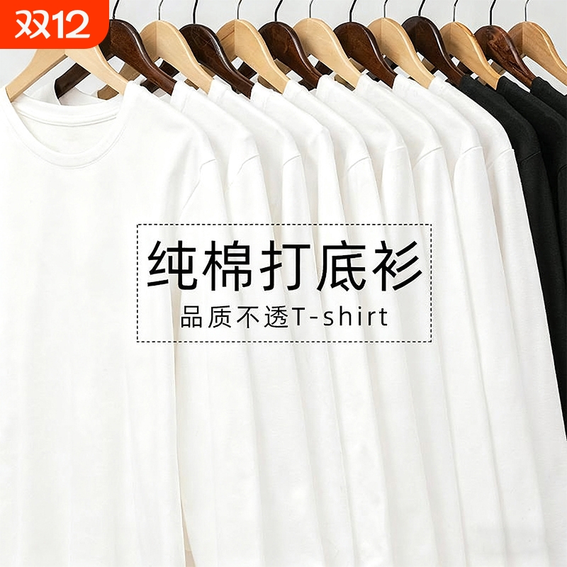 230G男士长袖t恤秋季男生新疆精梳纯棉重磅正肩纯白色宽松打底衫