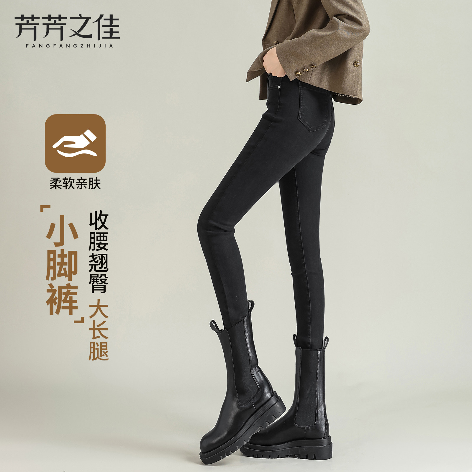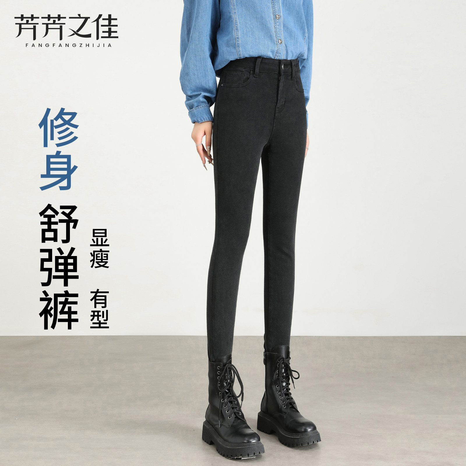 小脚牛仔裤女2026新款春季高腰修身紧身裤黑色冬加绒配靴子铅笔裤