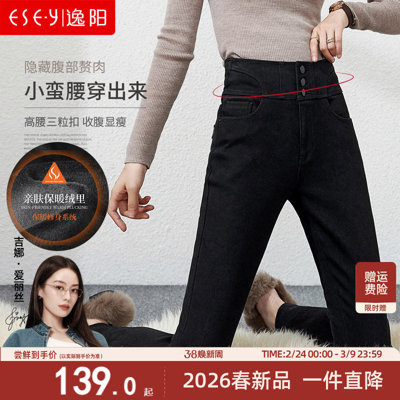 逸阳黑色高腰牛仔裤女加绒2025秋冬新款铅笔弹力显瘦加厚小脚长裤