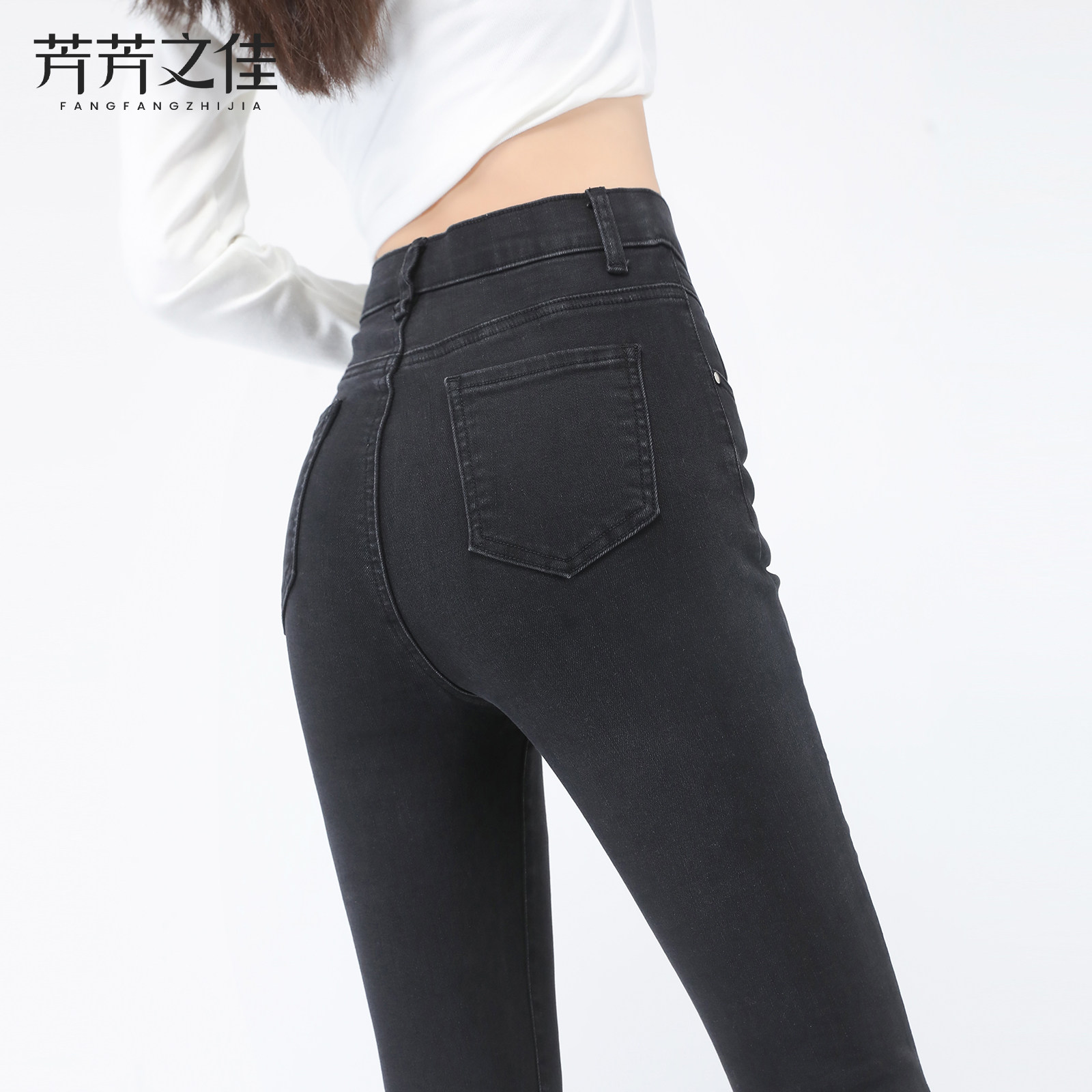 - 高腰高弹力牛仔裤女长裤