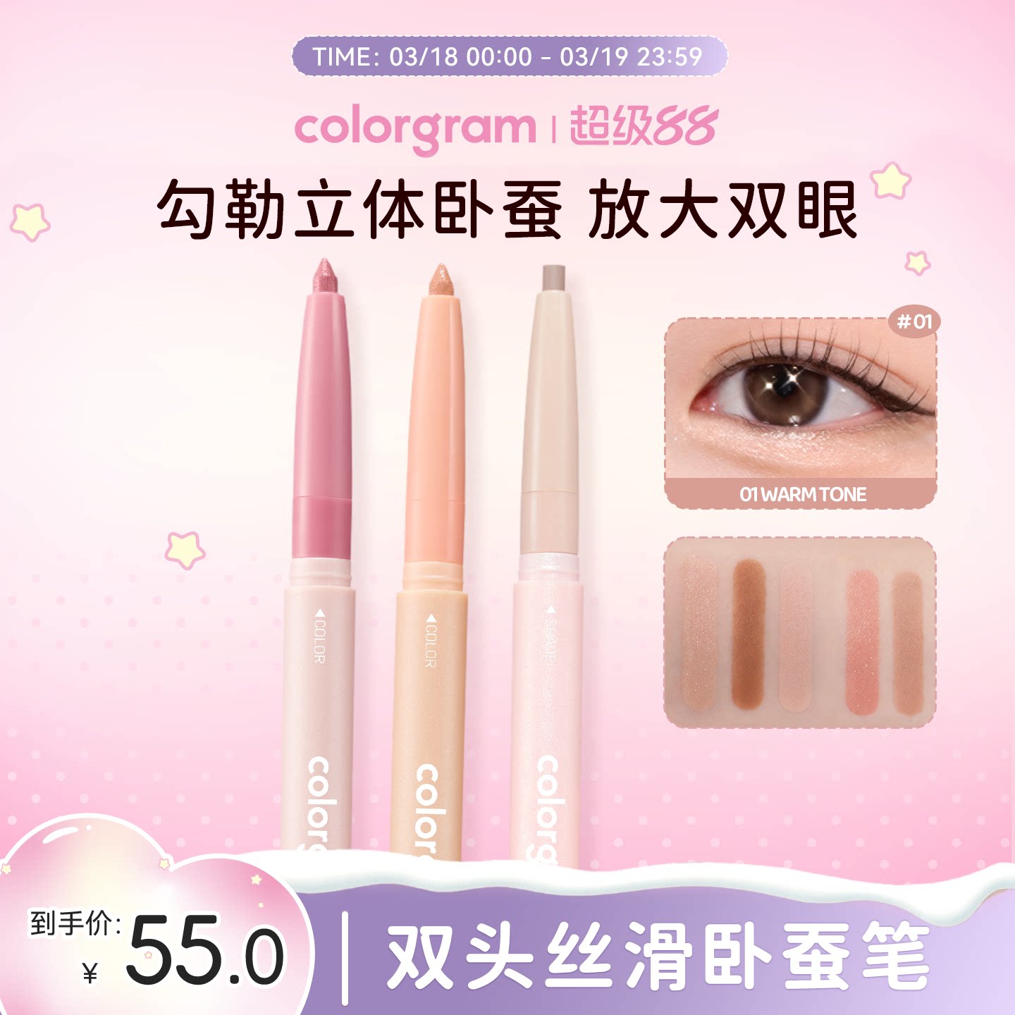 colorgram双头卧蚕笔高光提亮阴影下至韩国显色初学易上手