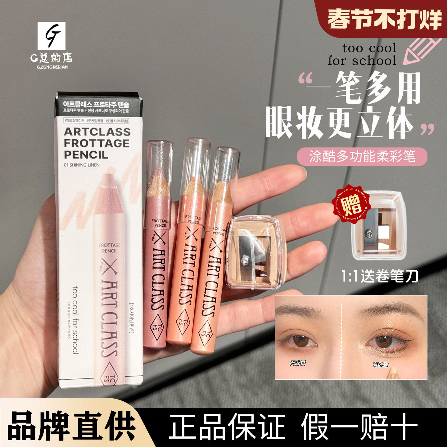 韩国too cool for school卧蚕笔涂酷01香槟珠光眼影笔14/15/07/11