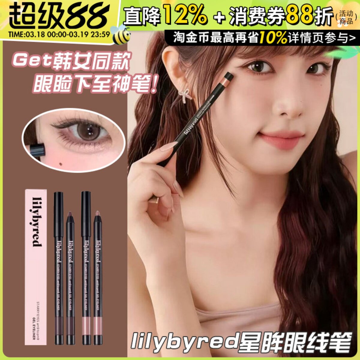【桃花眼】 韩国 lilybyred防水不晕染眼线胶笔自然04卧蚕17/19