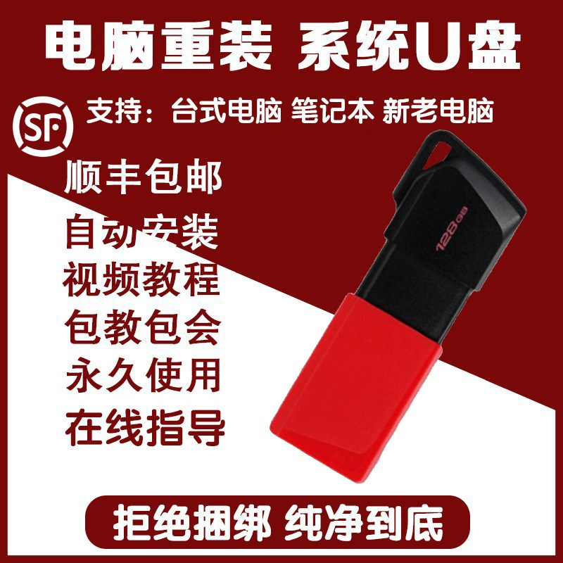 系统启动U盘电脑一键重装W10W11纯净7xp正版金士顿装机PE优盘维修
