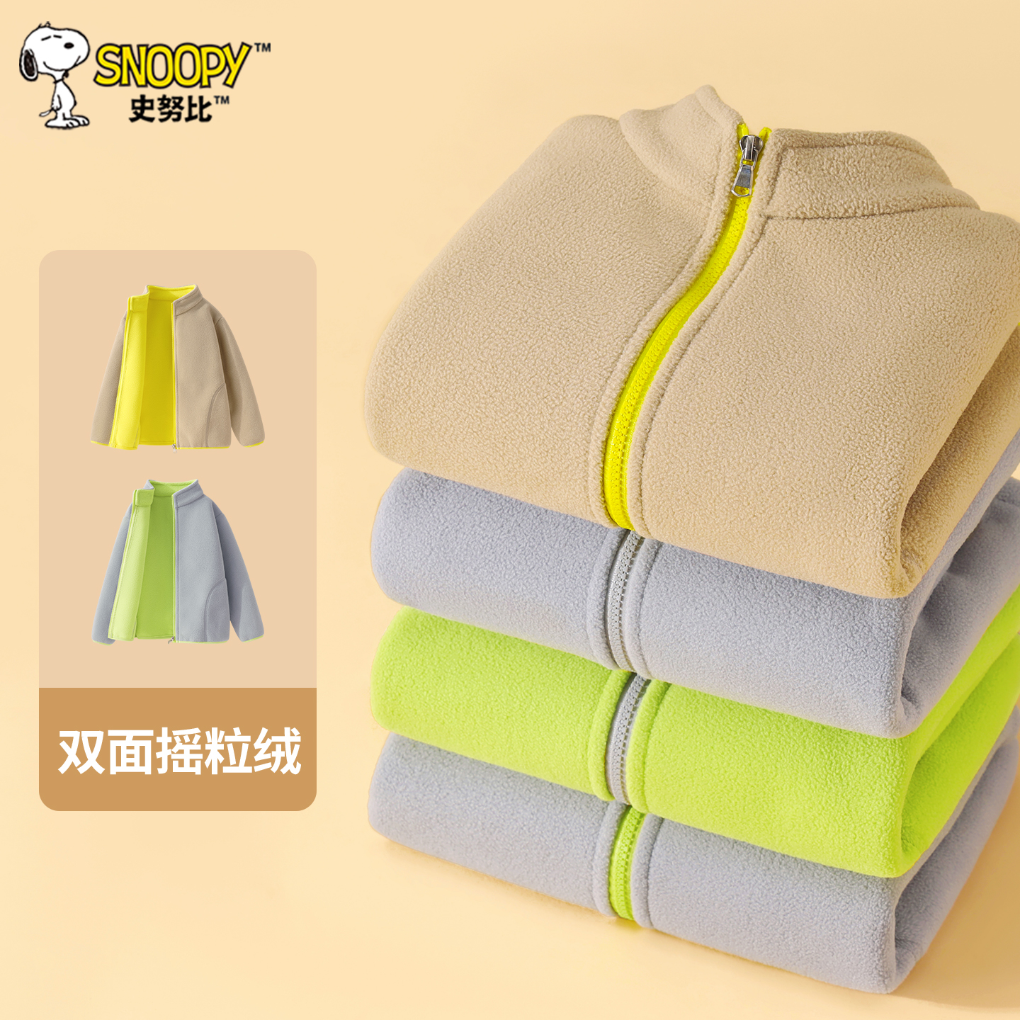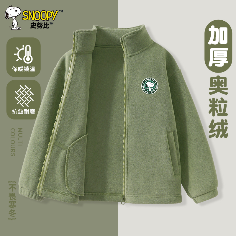 史努比男童外套秋冬摇粒绒开衫2025新款儿童加绒保暖上衣大童衣服