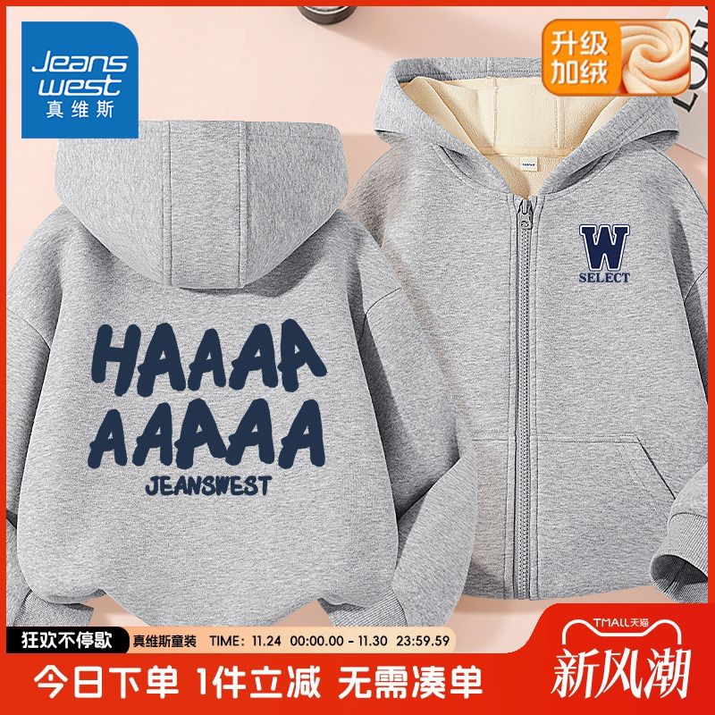真维斯童装男童外套秋冬季大童冬款加绒加厚卫衣运动开衫儿童冬装
