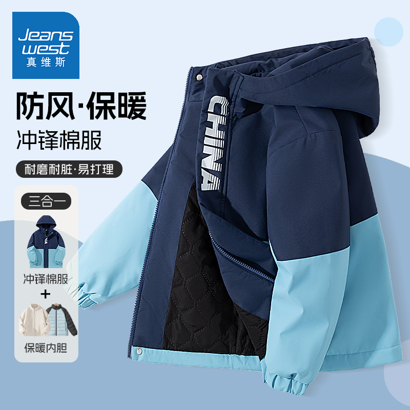 真维斯童装男童外套秋冬款儿童三合一冲锋衣男大童加绒保暖棉服冬