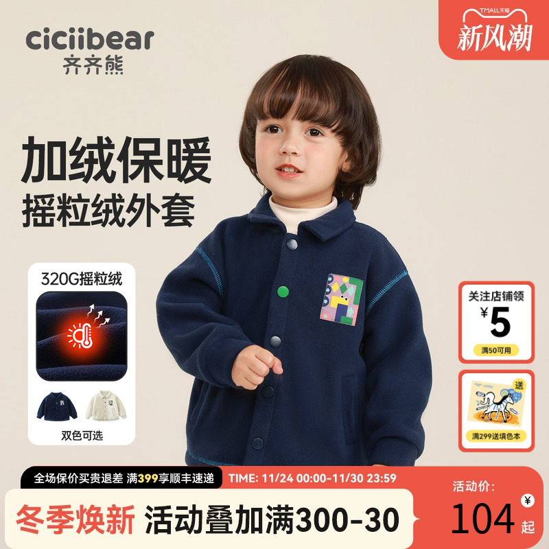 [加绒加厚]齐齐熊男童外套秋冬装宝宝摇粒绒上衣棉服儿童保暖衣服