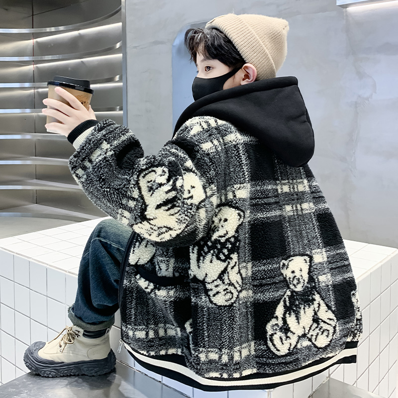 男童外套秋冬装2025新款中大童洋气加绒羊羔绒儿童保暖网红毛毛衣
