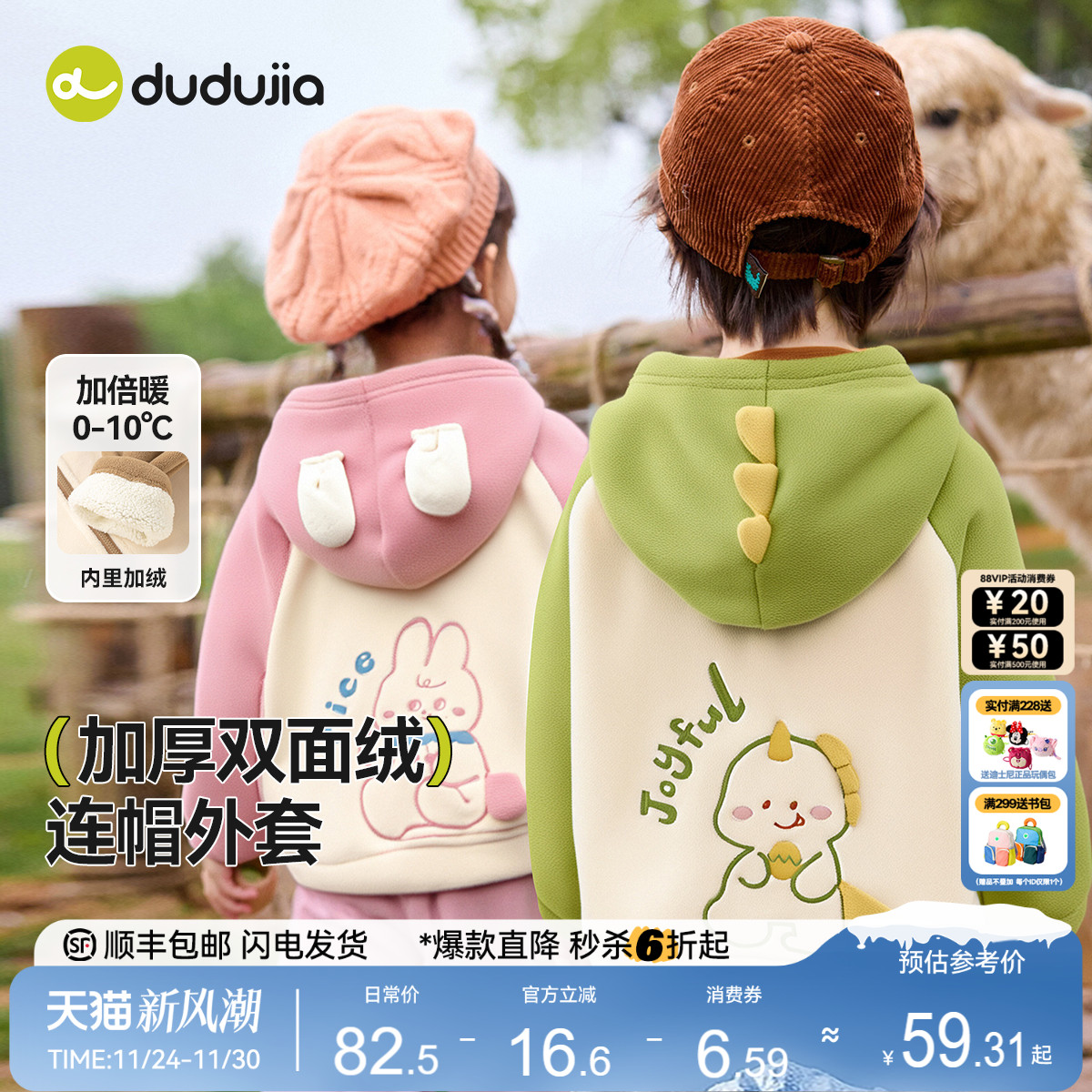 【双面绒】嘟嘟家男童外套秋冬儿童加绒可爱外衣宝宝软糯开衫冬装