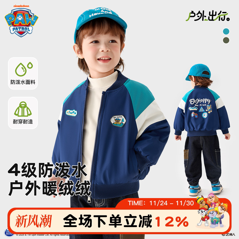 史努比男童外套秋冬款2025新款洋气秋季冲锋外套儿童加绒加厚衣服