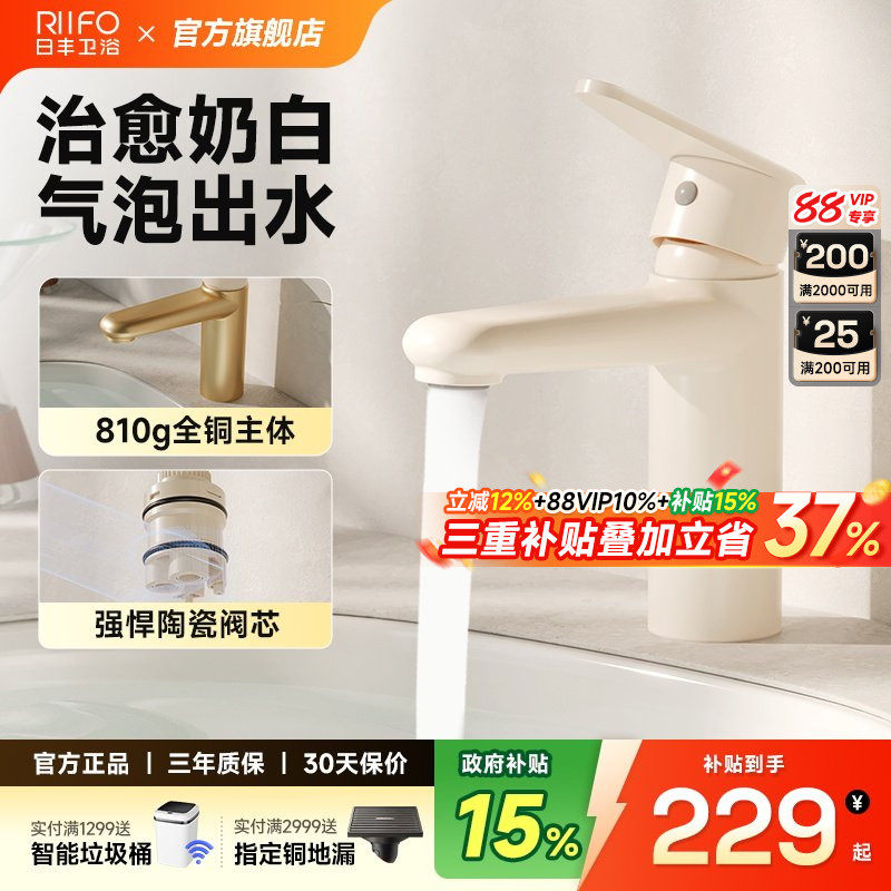 九牧王奶白洗脸盆水龙头冷热两用洗手盆招财猫洗漱台盆卫生间面盆