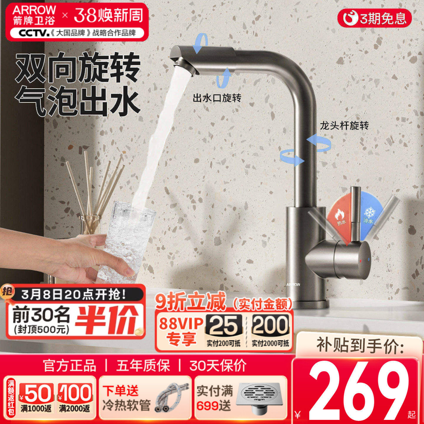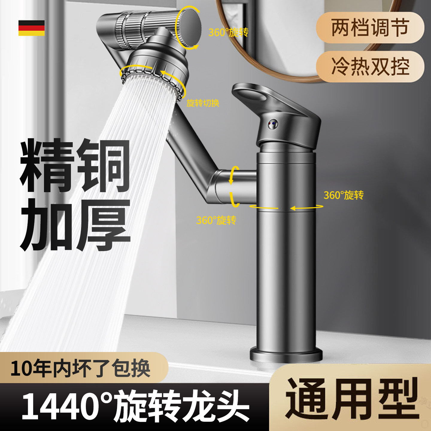 JMWR全铜洗脸盆水龙头冷热面盆浴室柜卫生间台盆龙头单冷水可旋转