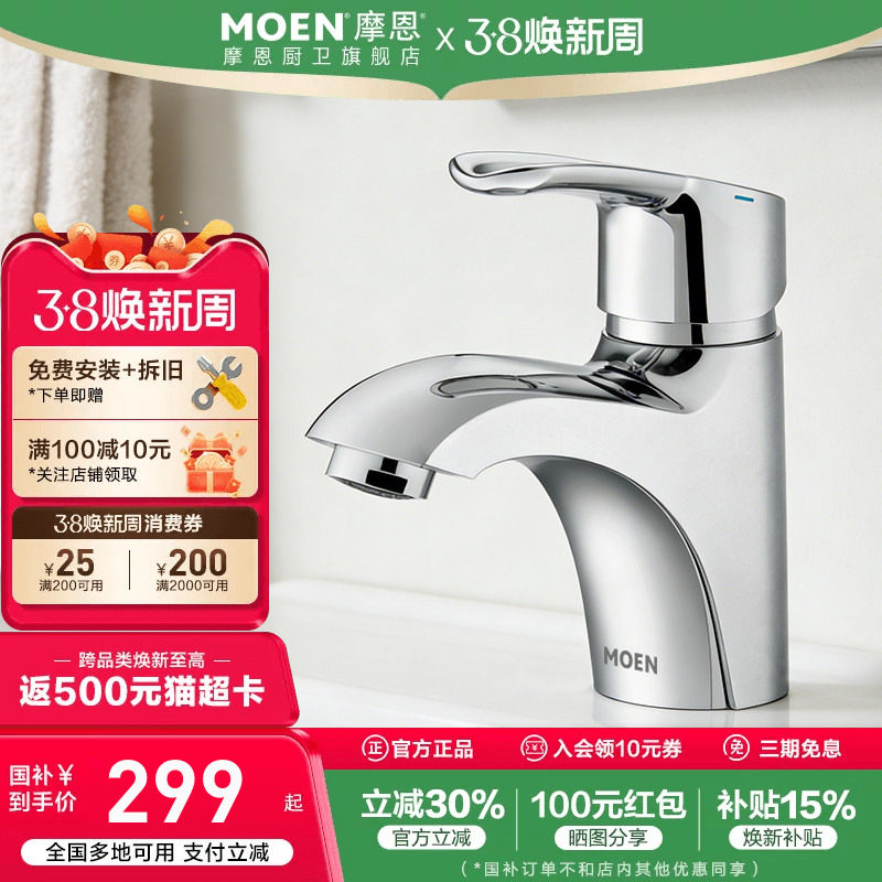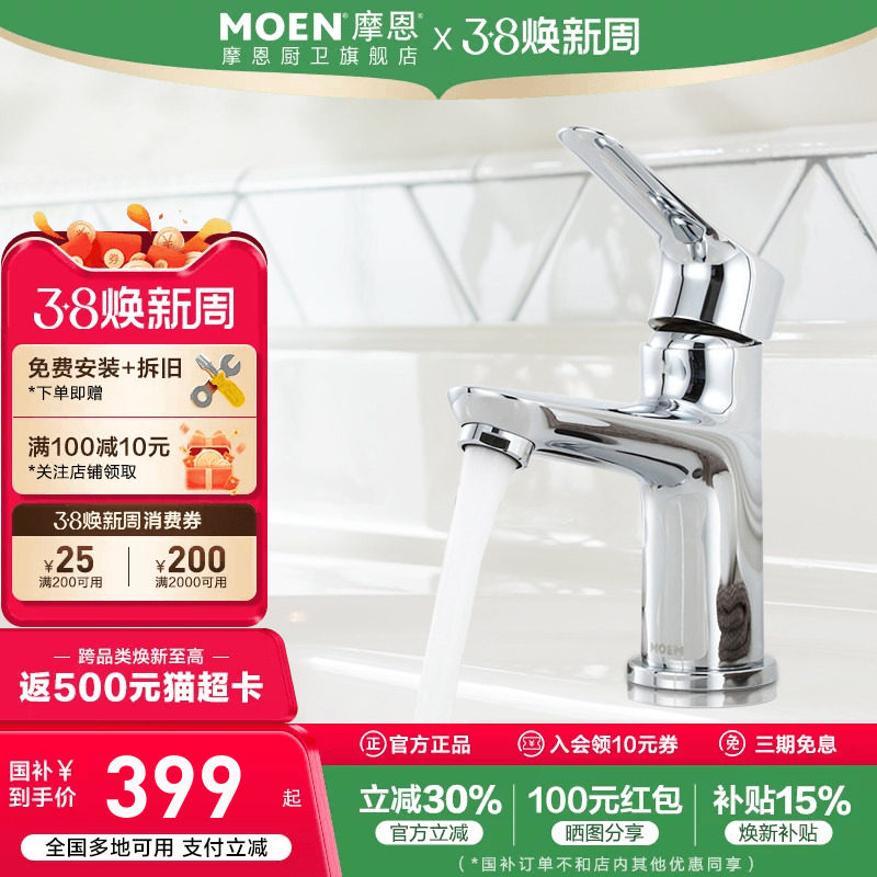 政府补贴摩恩洗脸盆水龙头冷热两用卫生间面盆洗手池台洗漱浴室柜