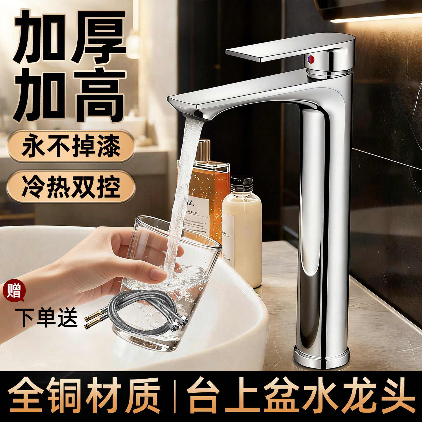 加高加长洗脸盆水龙头冷热两用款洗手池洗漱台盆卫生间台上盆面盆