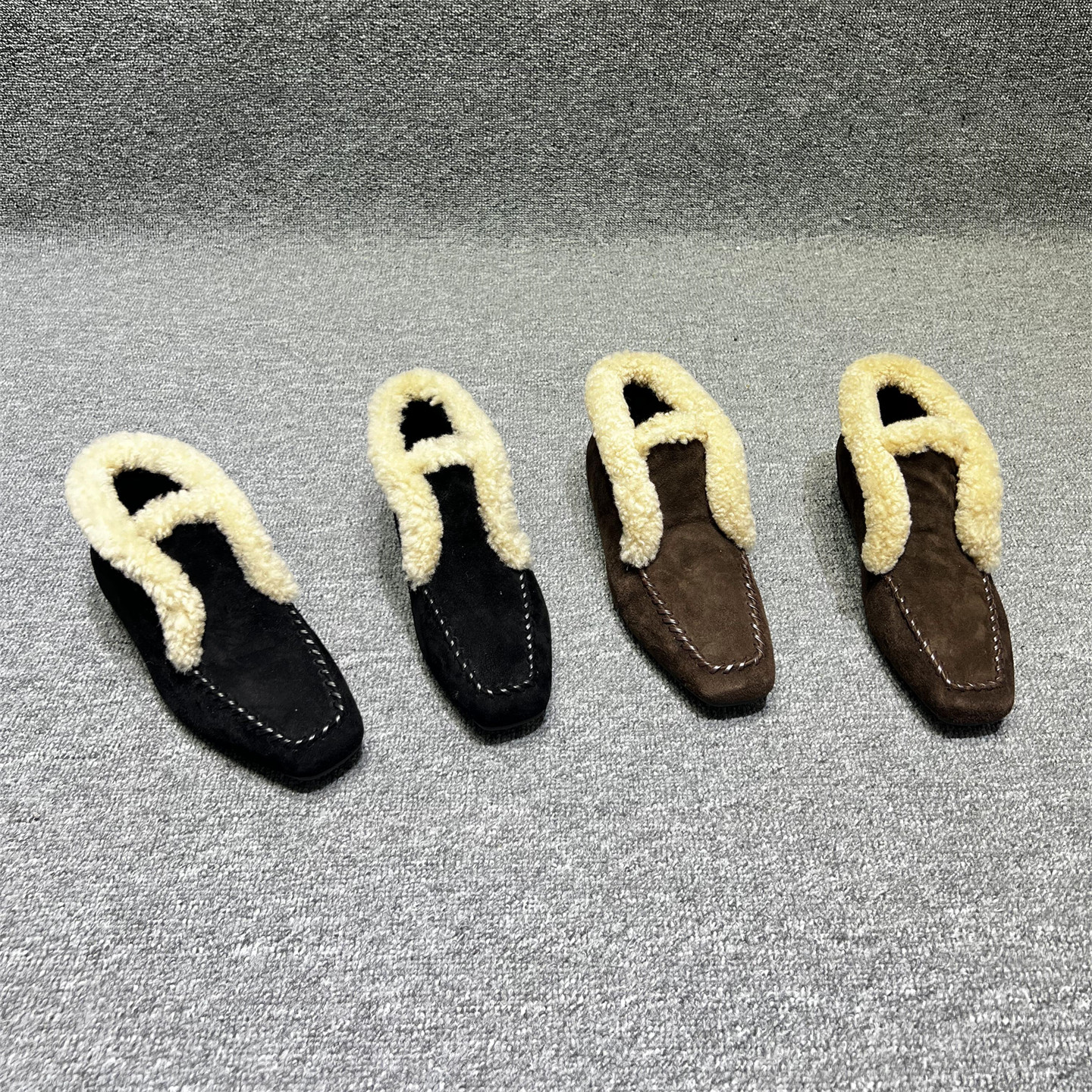 欧洲站2025秋冬新款皮毛一体平底鞋棉瓢女鞋一脚蹬毛毛鞋豆豆鞋女