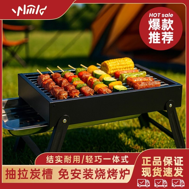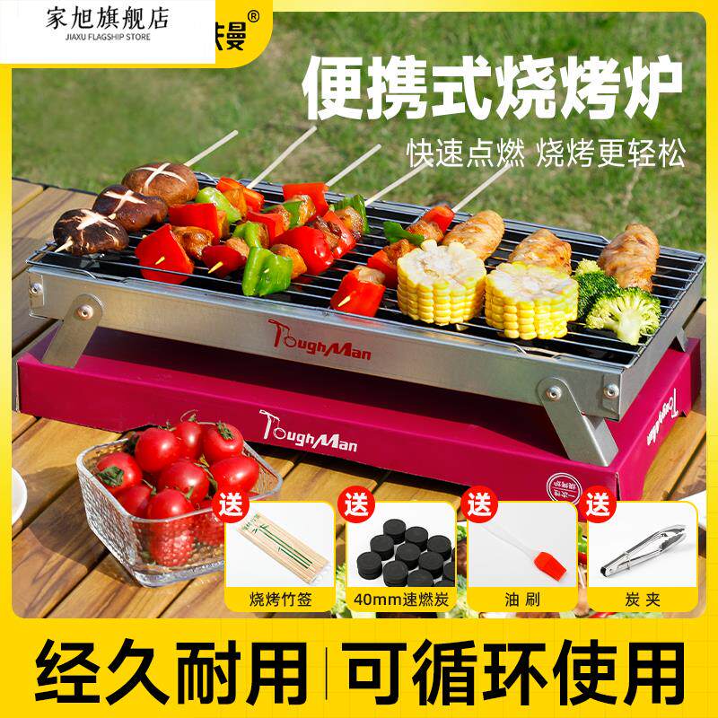 烧烤炉户外不锈钢便携式折叠烧烤架家用加厚收纳小型木炭烧烤肉炉
