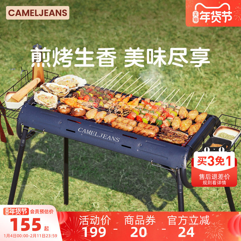 CAMELJEANS烧烤炉户外家用烧烤架高矮可调露营便携折叠野餐烤肉