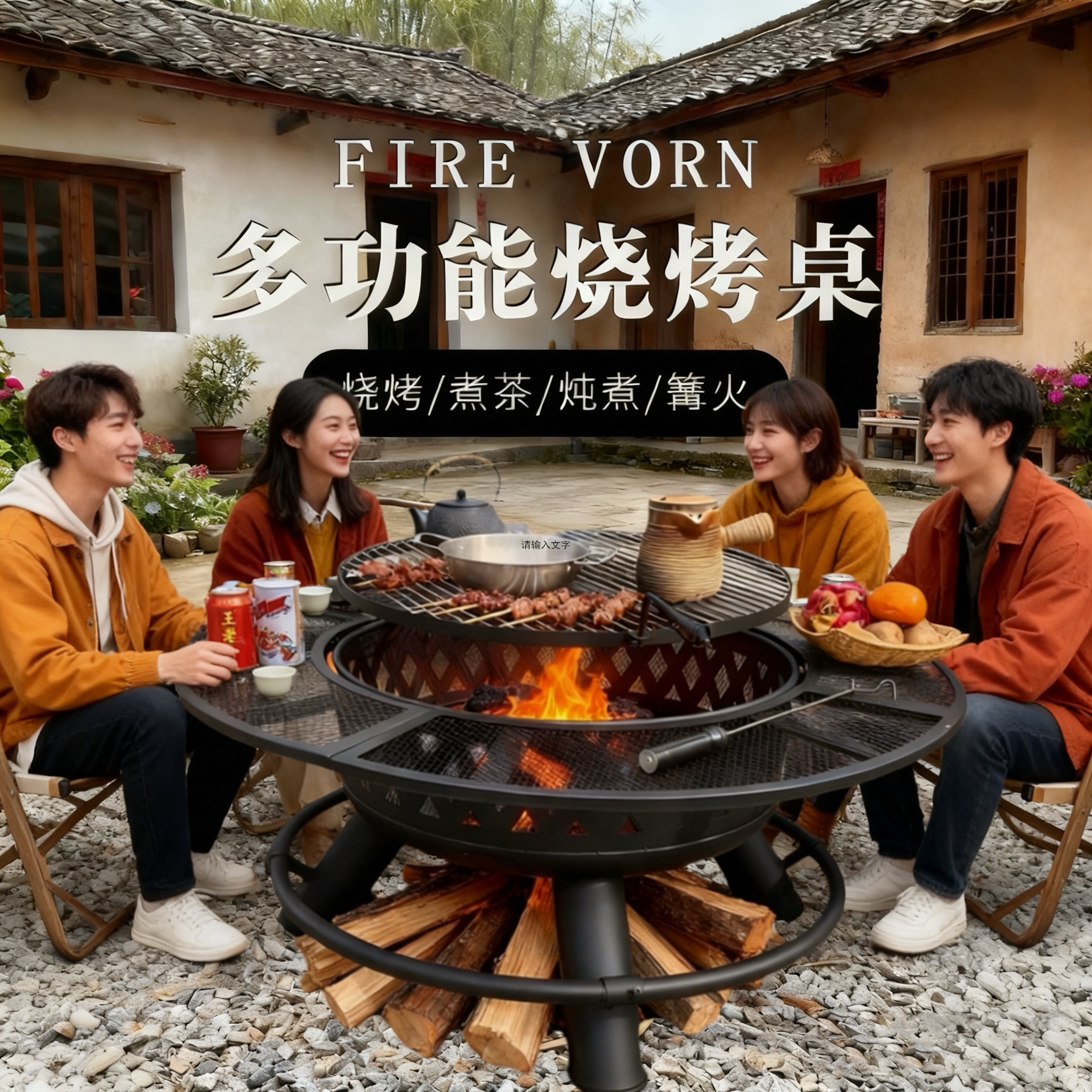 牧行围炉煮茶庭院烤火炉套装2025年新款烧烤炉户外别墅烧烤桌子
