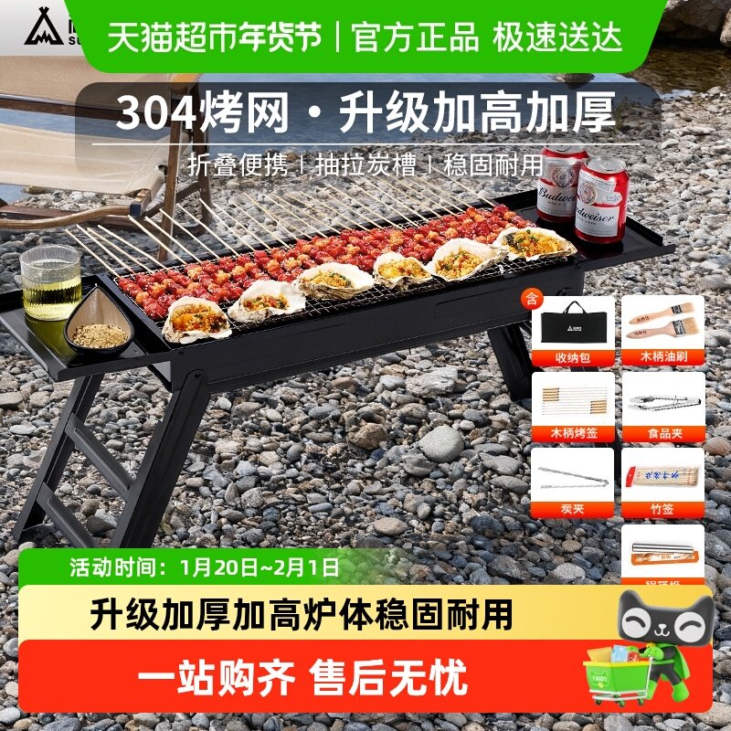 304不锈钢板烧烤炉户外烧烤架家用折叠烤肉炉子木炭露营装备便携