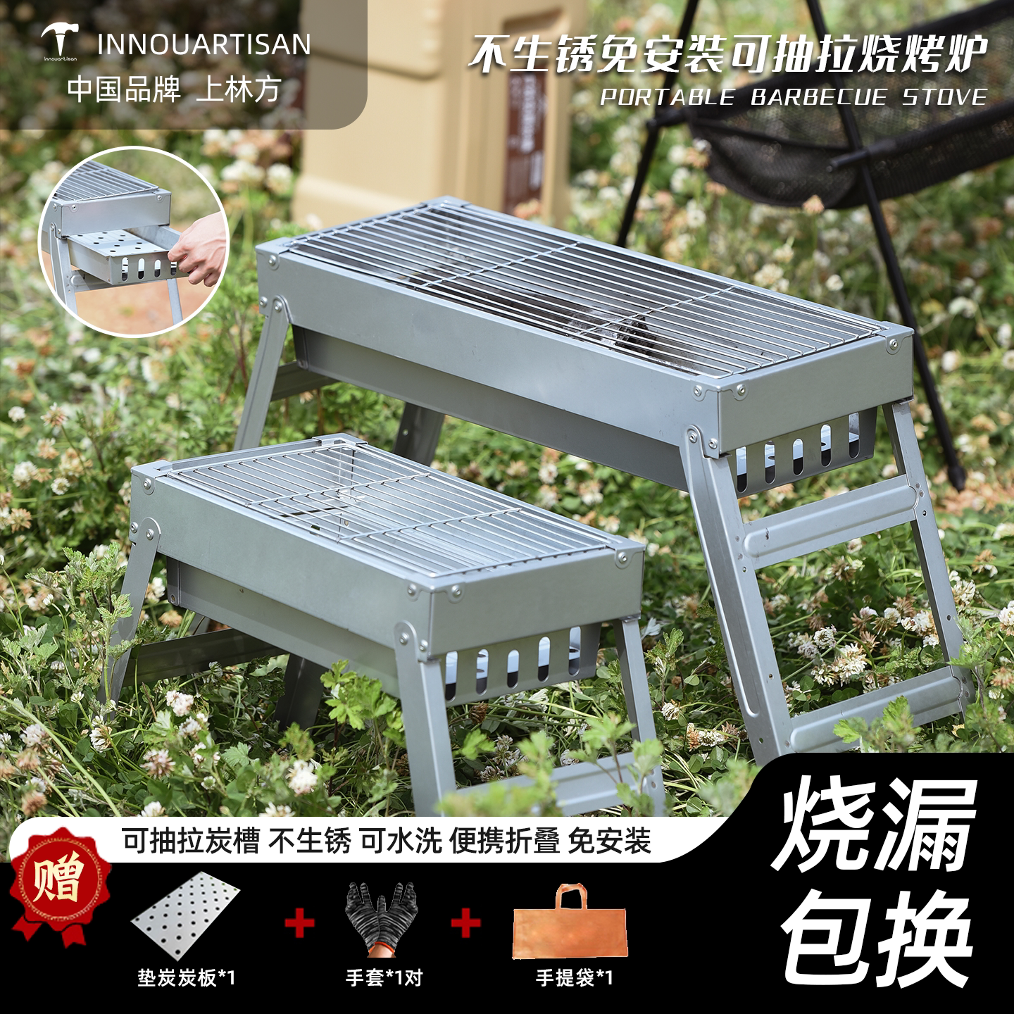 上林方烧烤炉户外家用木炭野炊野营便携式可水洗烤肉庭院碳烤炉子