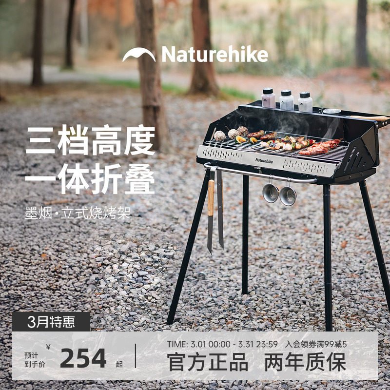 挪客墨烟立式烧烤架露营烧烤炉户外家用折叠便携木炭烤串烤肉炉子