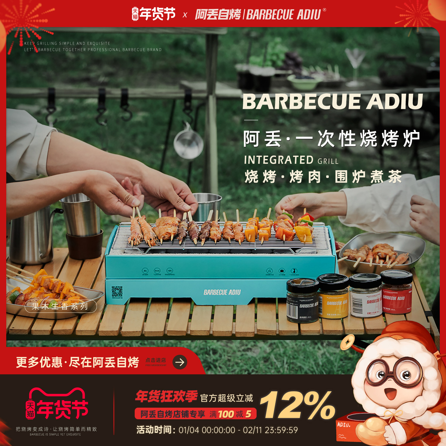 2025新款一次性烧烤炉户外碳烤炉套装便携家用烤盘围炉煮茶烧烤架