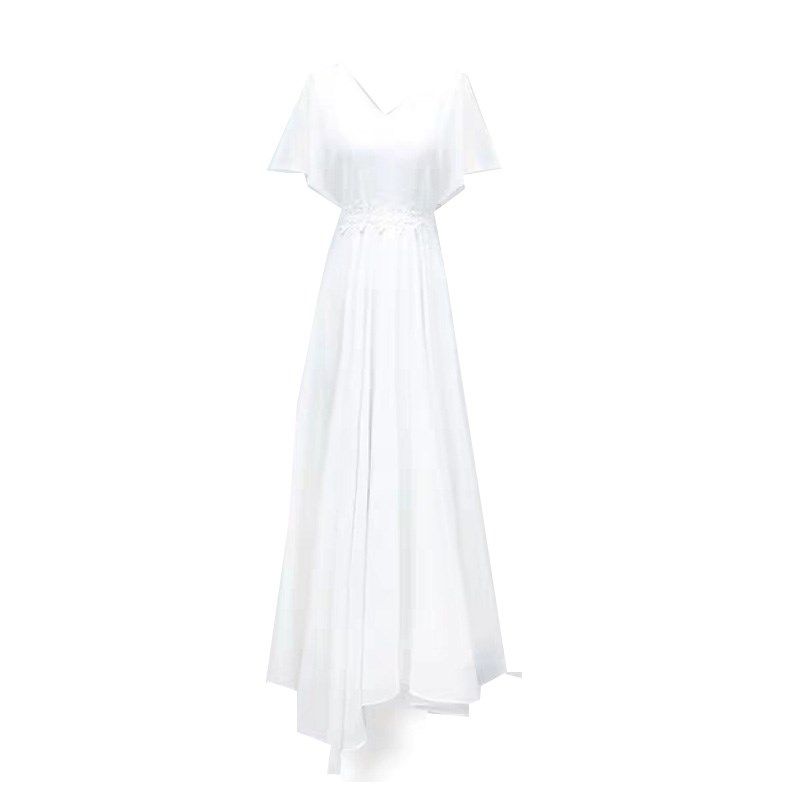 v领白色连衣裙修身显瘦2022新款雪纺裙子夏海边度假沙滩裙长裙女