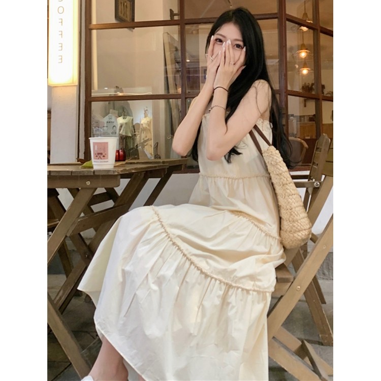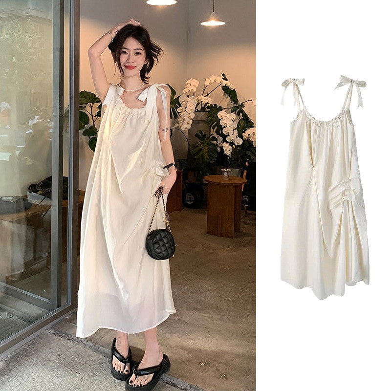 三亚海边度假吊带沙滩裙白色仙女拍照海岛绝美海滩连衣裙长裙旅游