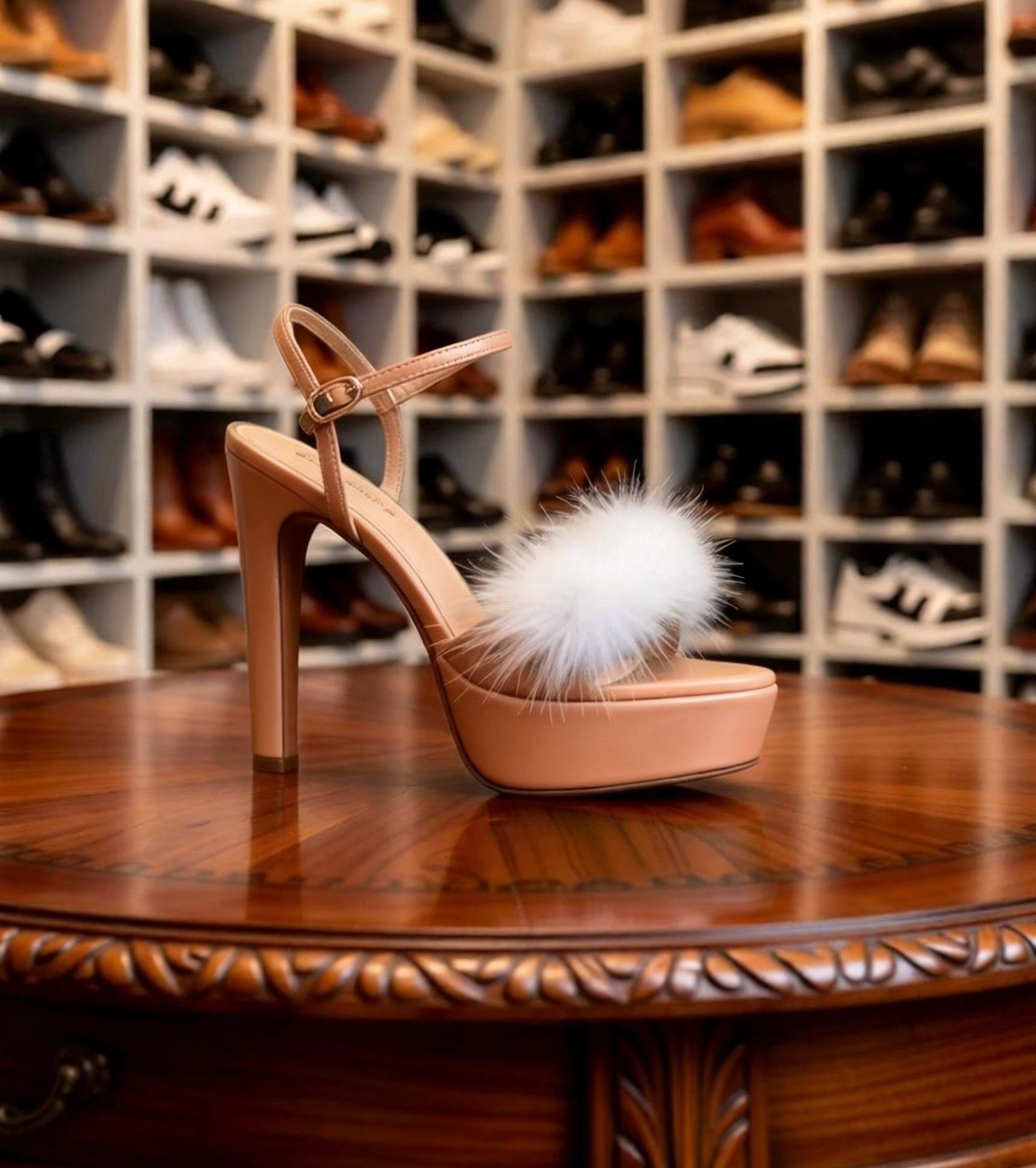 2026鱼嘴高跟兔毛一字带手工定做女鞋 真皮欧美外贸凉鞋单鞋优雅