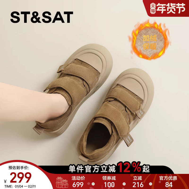 星期六厚底加绒面包鞋板鞋女鞋2025秋冬新款魔术贴保暖休闲运动鞋
