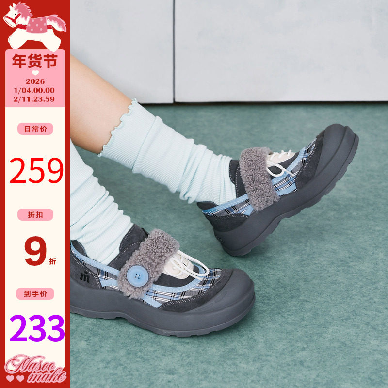 玛速主义2025新款魔术贴厚底大头丑萌鞋女冬加绒休闲鞋小众运动鞋