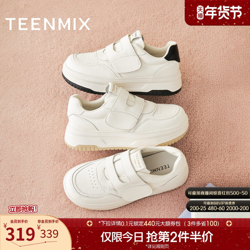 天美意魔术贴厚底增高面包小白鞋运动板鞋女鞋子休闲鞋2025秋新款