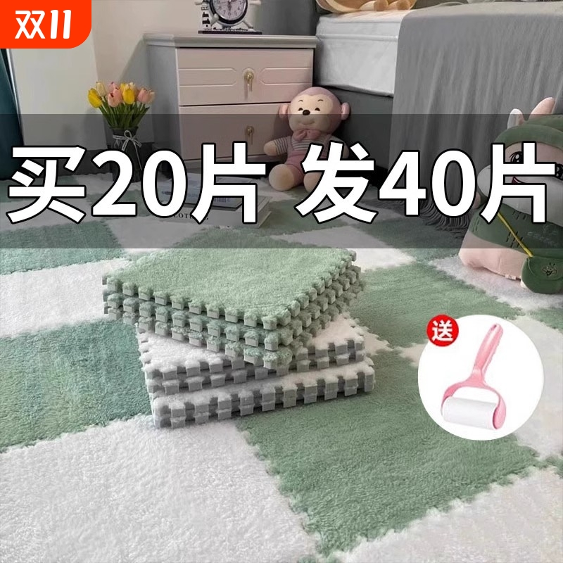 毛绒地毯卧室拼接地垫方块加厚客厅全铺床边毯垫子防滑无甲醛房间