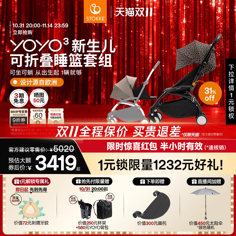 【双11开抢】StokkeYOYO³全能型轻便车婴儿推车新生睡篮登机伞车