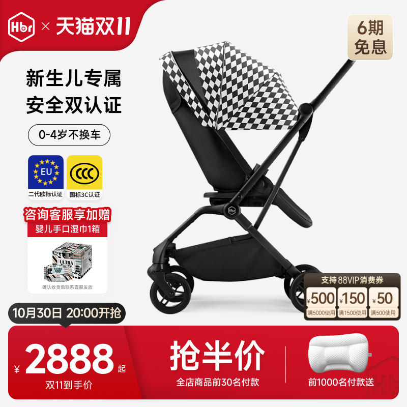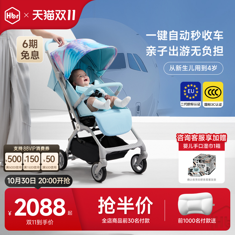 HBR虎贝尔遛娃神器婴儿车推车双向高景观轻便折叠溜娃车城市漫步