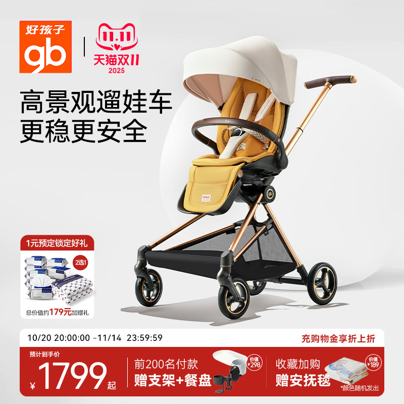 gb好孩子安全舱2号pro新生婴儿车可坐躺双向高景观推车轻便易折叠